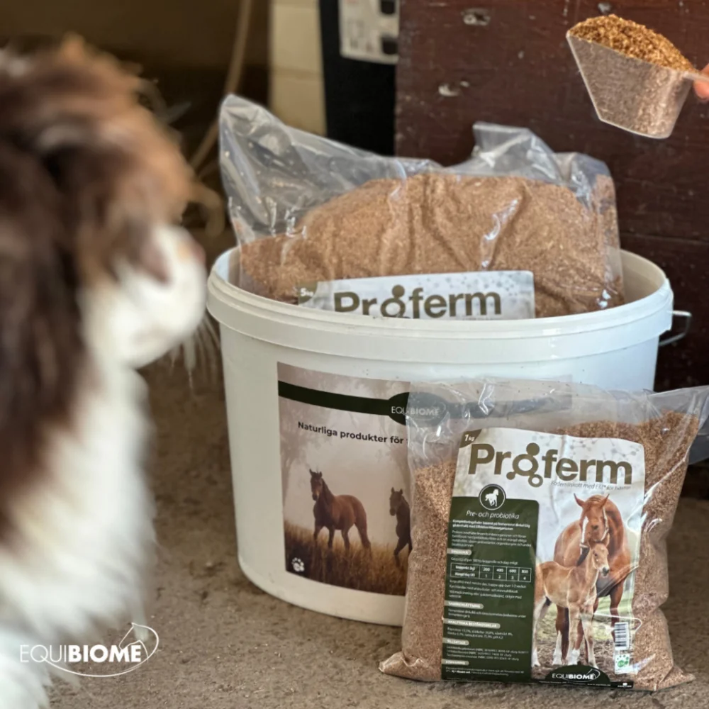 Proferm är ett fermenterat dinkelkli med prebiotiska fibrer, speciellt utvecklat för hästar. Innehåller levande bakterier, antioxidanter och matsmältningsenzymer. En daglig dos av goda bakterier kan balansera tarmfloran och stötta hästens matsmältning och näringsupptag.