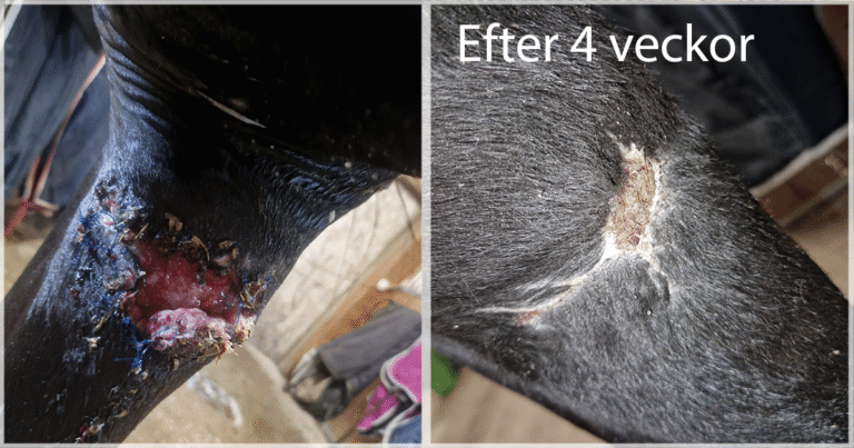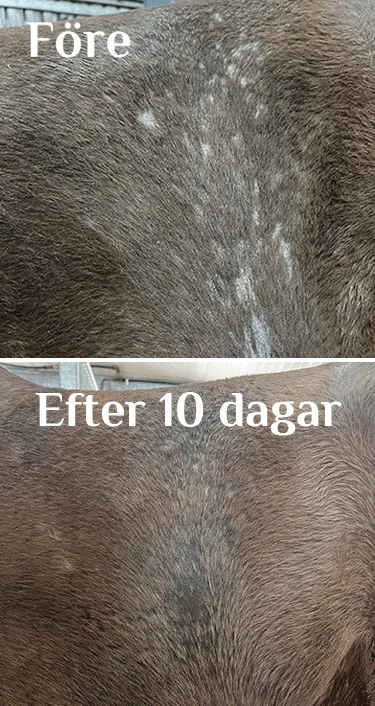 ”2023 drabbades våra travhästar av ett seglivat virus som främst satte sig i karlederna men även på huden/pälsen. På huden uppstod knottror och bölder och när de lagt sig blev det i stället massor av krustor, pälsen lossnade och de började mjälla. Vi rådfrågade veterinären om att ge penicillin men vi fick rådet att avvakta och gav i stället massor av zink, kisel och b-vitamin. Inget hjälpte!